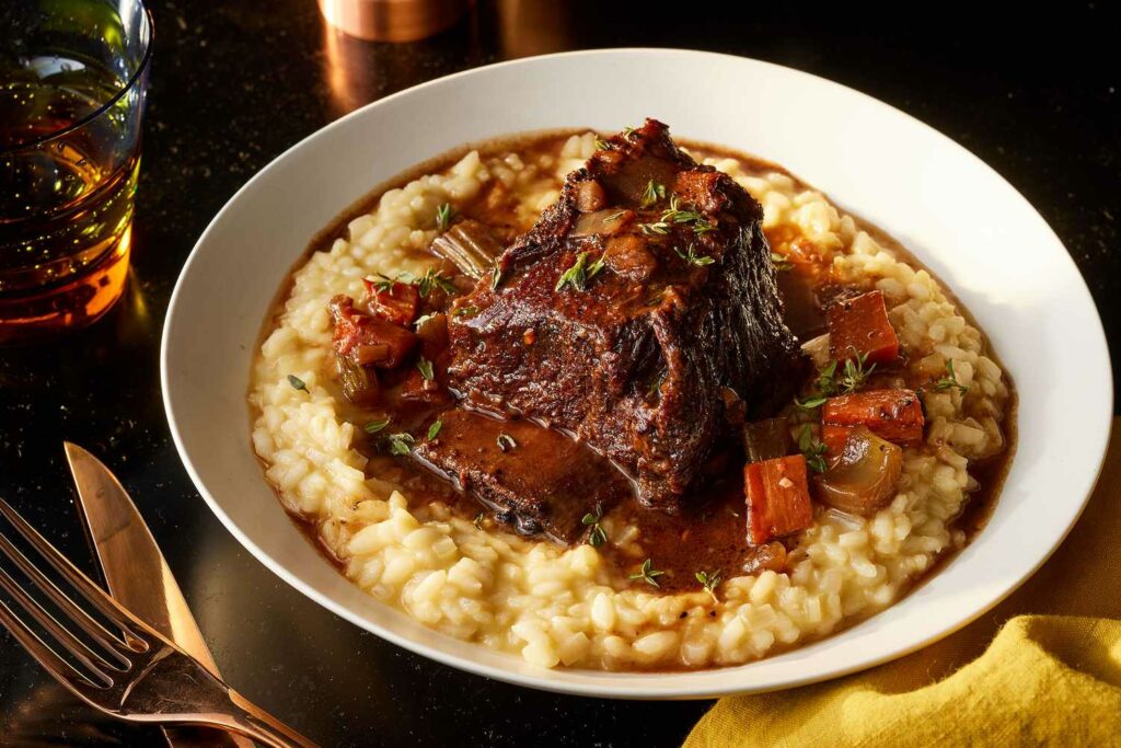 Escape to the Alps with Lizzie Stewart for a cozy evening! Enjoy a shared fondue course for two, followed by a comforting saffron risotto with braised beef ragu, and finish on a sweet note with a decadent chocolate Swiss roll. Perfect for a romantic night or a fun culinary adventure.