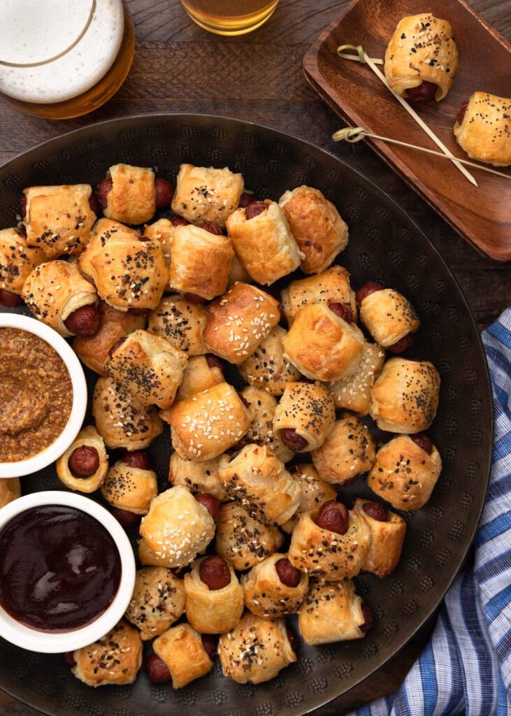 Bangers in a Blanket | Irish banger rolled in puff pastry and served with a blackberry and maple sauce.