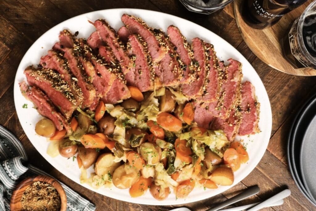 Entree: Corn Beef and Cabbage with Roasted Carrots and Guinness Gravy