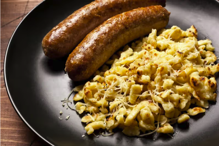 Entree: Seared German Sausage with cheese spätzle served with Fine Herbs